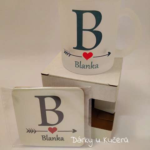 Matné sklo, 330ml. Podtácek 10x10cm korek. Potřebujete hrnek či podtácek se jménem které není v nabídce? Objednejte si tento produkt, vyberte variantu, případně počet kusů a do zprávy v objednávce napište požadované jméno. Případný dotaz na tel. +420 604 677 987 nebo na emailu info@darkyukuceru.cz.