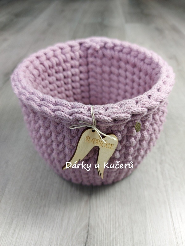 Ručně háčkovaný košík, dno je z překližky 3mm a Ø13cm. Výška košíku je 11cm. Využití: obal na květináč nebo košíček na cokoliv. VÝROBCE A DISTRIBUTOR: DÁRKY U KUČERŮ KRÁSNÝ STUDENEC 165,DĚČÍN celý popis