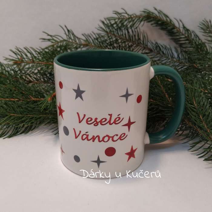 Hrnek vánoční-zelený vnitřek a ucho