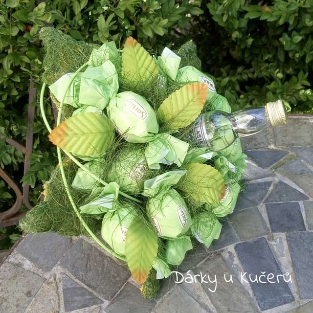 - Kytice z italských bonbónů + vodka