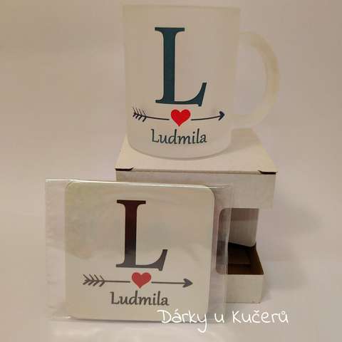 Matné sklo, 330ml. Podtácek 10x10cm korek. Potřebujete hrnek či podtácek se jménem které není v nabídce? Objednejte si tento produkt, vyberte variantu, případně počet kusů a do zprávy v objednávce napište požadované jméno. Případný dotaz na tel. +420 604 677 987 nebo na emailu info@darkyukuceru.cz.