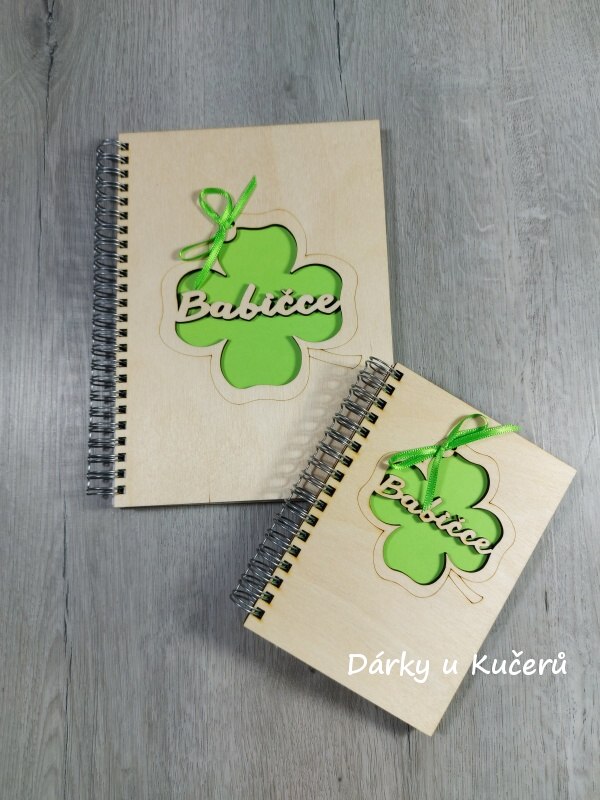 - Zápisník s dřevěnými deskami pro BABIČKU
